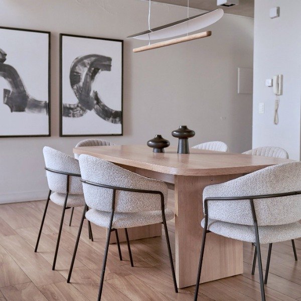 Mesa de comedor fabricada en melamina sobre MDF símil madera color CAMELIA de FAPLAC.